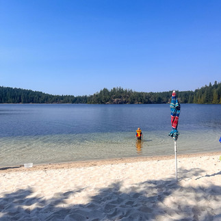 We left the resort and it was time for a swim, I had been told by a friend about Hague Lake. This whole area is so beautiful and the lake is a really nice tempature. We went to the day use area and it was beautiful, it is the most white sand, I've ever seen at a lake. After swimming in the ocean the night before and this day, it felt really good to feel the lake water. We then went to Smelt Bay Provincial Park where we checked in to our campsite for the night and set everything up yet again. The campground is really well kept. It's no where near the beach but still really nice in a forest setting. We got campsite #15 and it was honestly the best. Super private and I loved how it is tiered, where we park the car and the upper part is where our tent was. The camping fee is $20 a night which isn't bad. They do have an overflow area down below near the beach in a gravel parking lot for campers if you weren't able to snag a spot. The first night camp spot definitely takes the cake but it was nice to go somewhere different for our last night. It just wasn't fun setting up and taking our stuff down twice. We went down to the beach and marvelled in the sun, sun-bathed and where I went swimming.